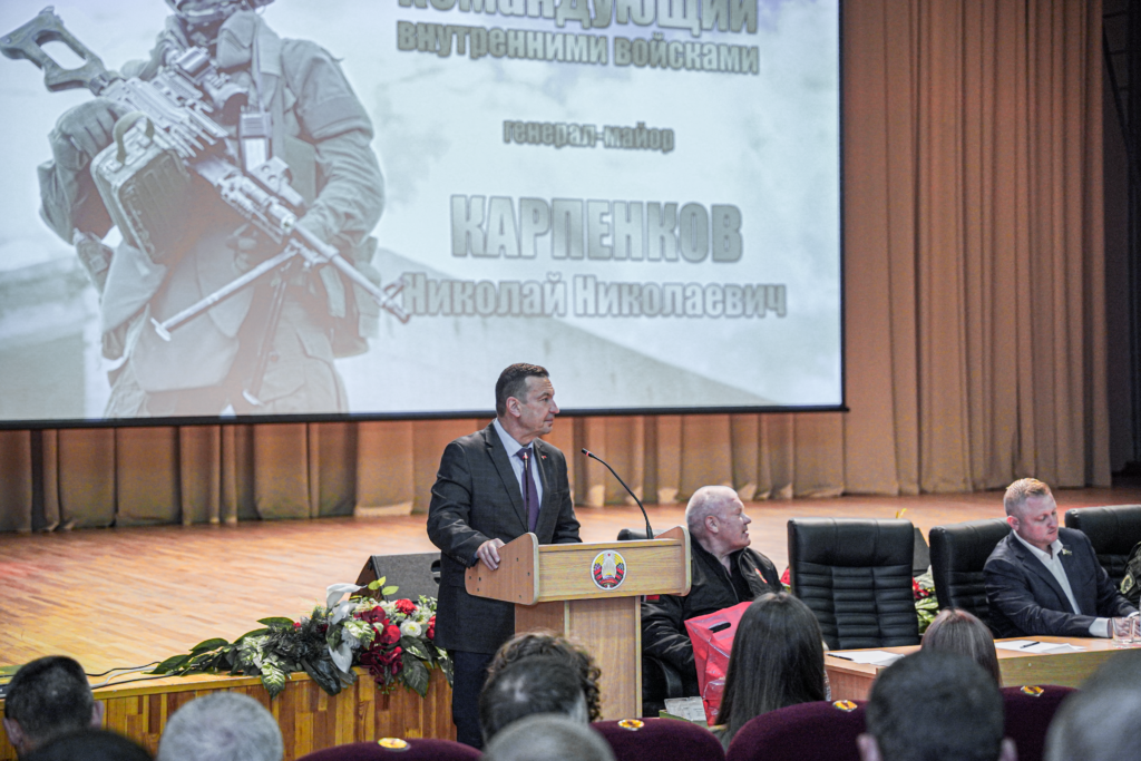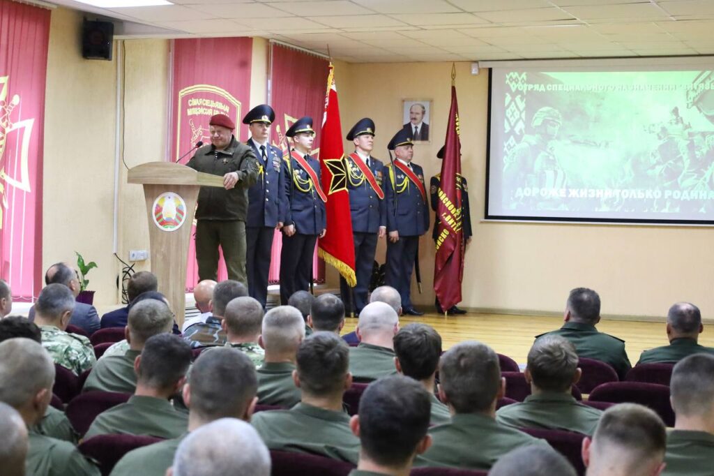 В процессе выступления перед личным составом, Дмитрий Валерьевич, рассказал о зарождении, становлении и развитии традиций спецназа внутренних войск современной Беларуси, о героизме, проявленном бойцами во время выполнения боевых и служебных задач в конце 90-х и 2000-х.
