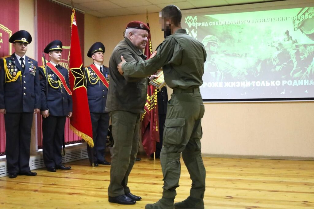 Отрадно, что в рядах Службы на различных руководящих должностях проходят службу выходцы из спецназа внутренних войск, обладатели Крапового берета — военнослужащие, которые не только в период службы в войсках, но и в непростые для страны времена всегда проявиляли решительность и мужество, в сложнейших условиях становились надежным щитом от посягательств на интересы белорусского народа и государства.