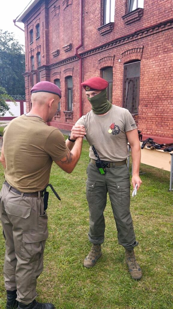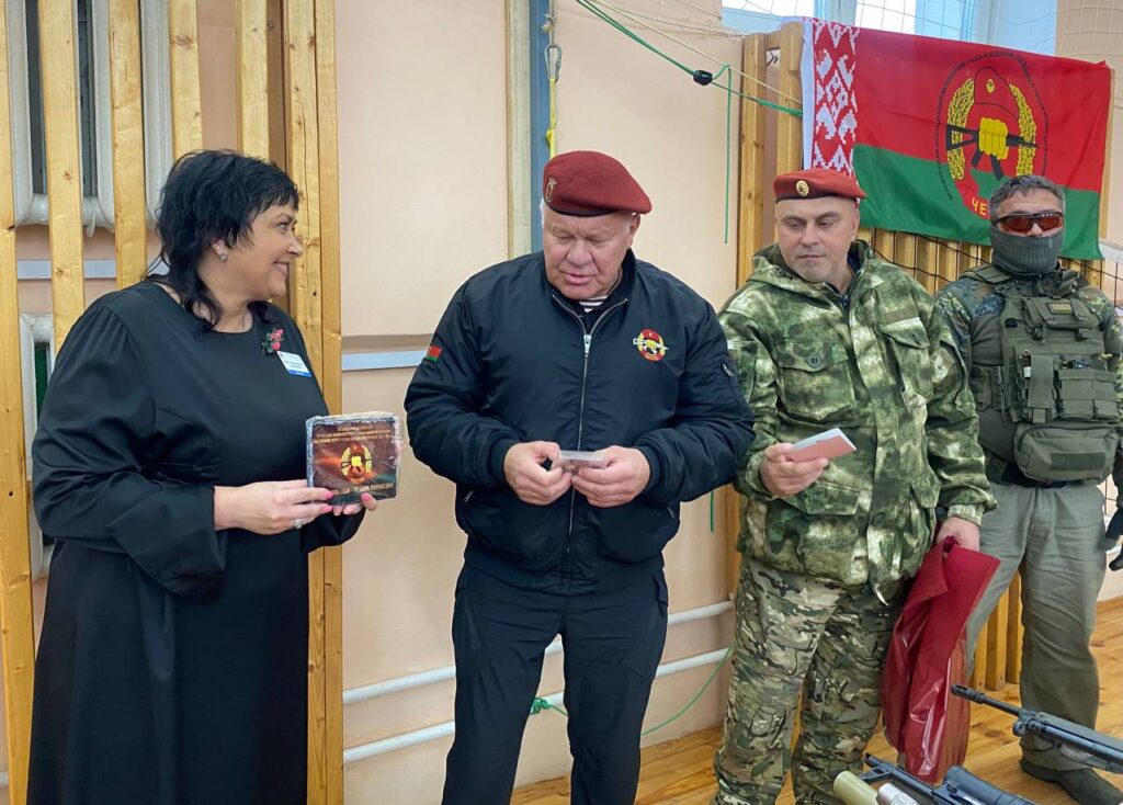 На территории Центра специальной подготовки ВВ МВД прошли занятия у ООСН «ЧЕСТЬ». В начале занятий, Председатель Совета Ассоциации «ЧЕСТЬ» Павличенко Дмитрий Валерьевич, после доведения оперативной обстановки вокруг Беларуси, за активное участие в деятельности Ассоциации и отряда и преданность Отечеству и делу спецназа, вручил головные уборы подразделений внутренних войск — оливковые береты, наиболее отличившимся бойцам отряда.