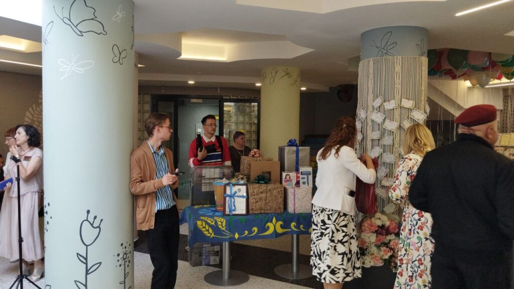 Дмитрий Валерьевич уделил внимание и бойцам — каждого из присутствующих ждал памятный подарок — календарь Ассоциации «ЧЕСТЬ» на 2025 год и ценный подарок для детей и внуков бойцов — набор для игры в дартс.