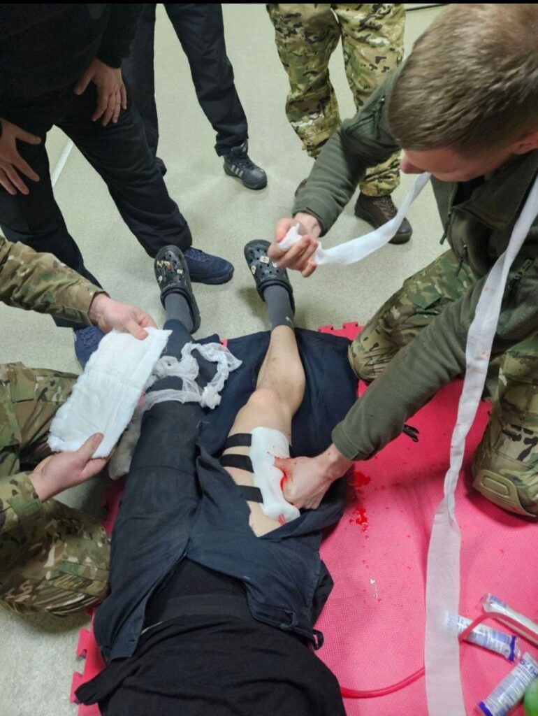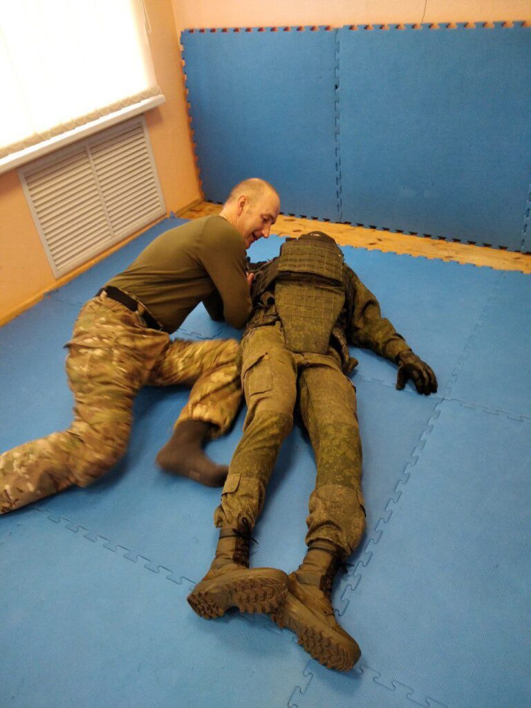 В ходе тактико-медицинской подготовки, бойцы продолжили тренировать навыки оказания само- и взаимопомощи, а также установления словесного контакта с ранным, познакомились с некоторыми способами его эвакуации.
