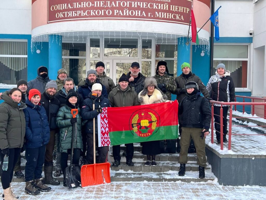 По первому зову, часть личного состава минского отряда «ЧЕСТЬ» помогла очистить дворовую и прилегающую территорию ГУО «Социально-педагогический центр Октябрьского района г. Минска», освободив проезд для транспорта, подвозящего продукты питания и предоставив возможность юным воспитанникам и сотрудникам учреждения свободно передвигаться по территории учреждения.